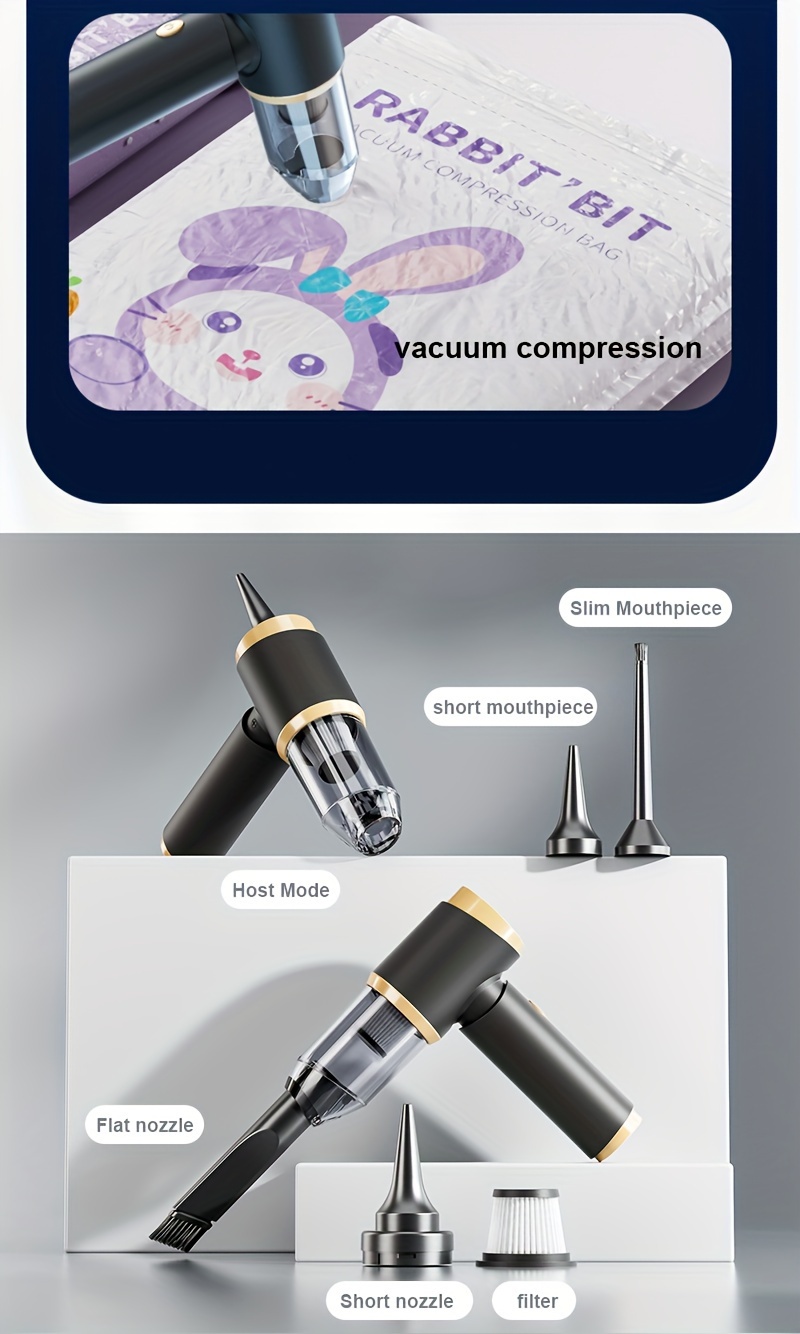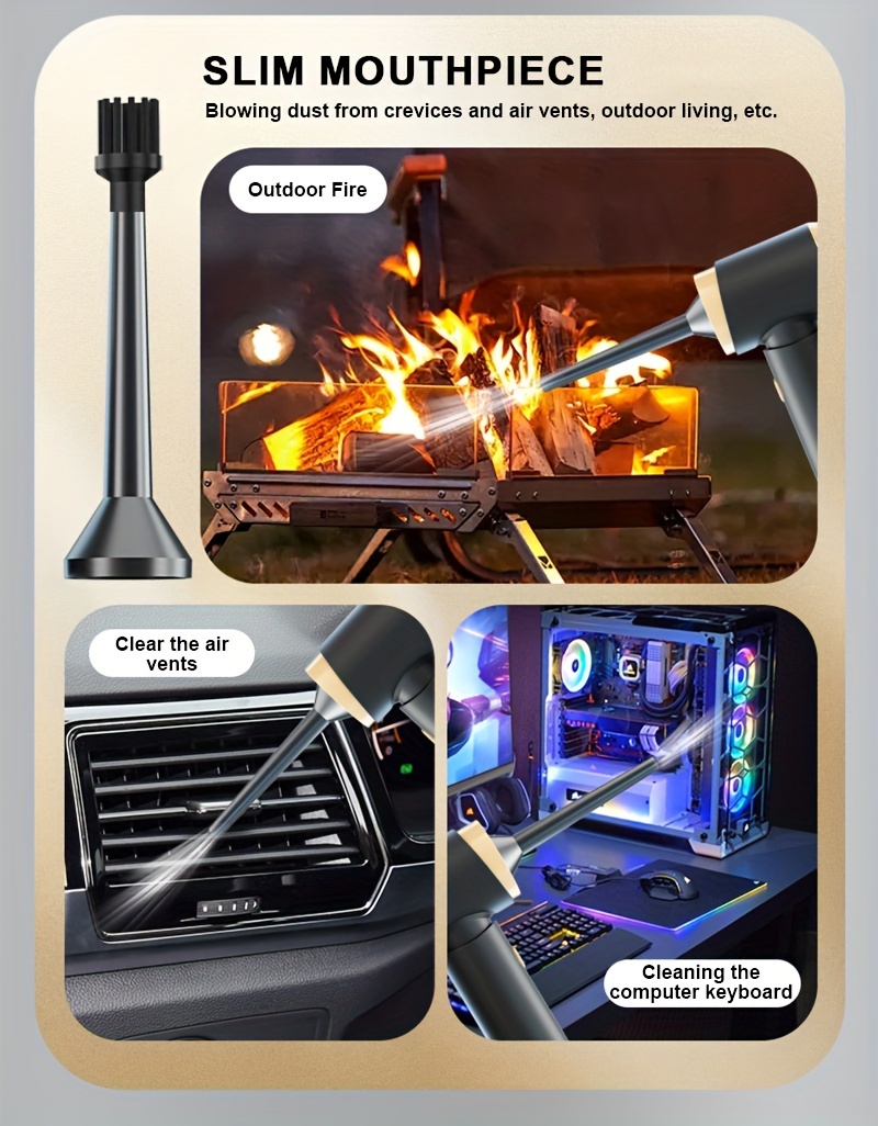3-in-1 Portable Air Duster & Vacuum - High-Power 60000RPM, Strong Suction, Type-