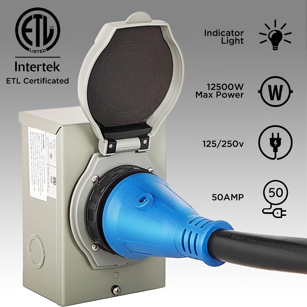 SPECIFICATIONSBattery Properties: Without BatteryItem ID: KK12703050 Amp Generator Cord and Power Inlet Box, 15FT Generator Cords 50 Amp, 125V/250SKU: 41275$107.48PriceColorBlack+BlueQuantity*Add to CartBuy Now